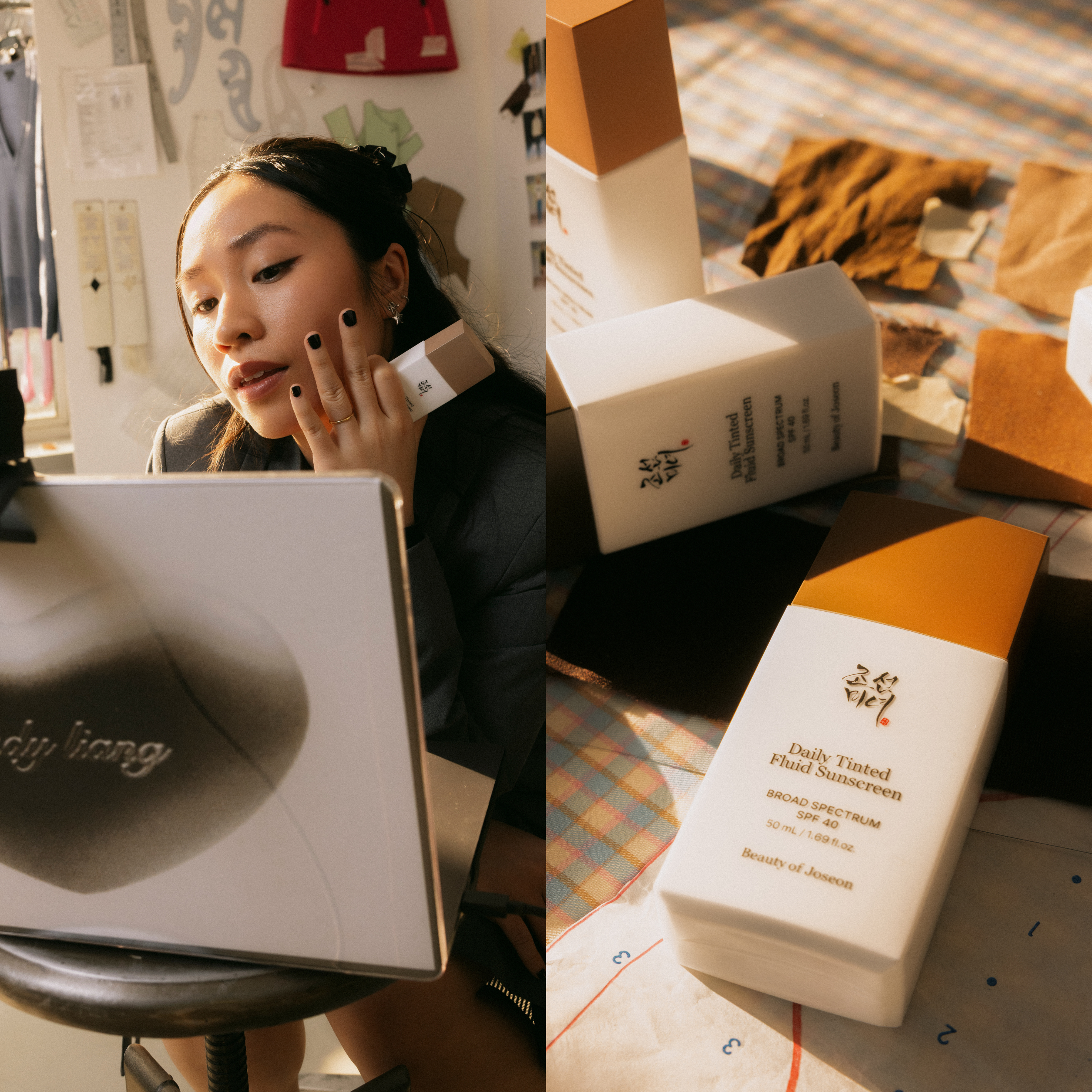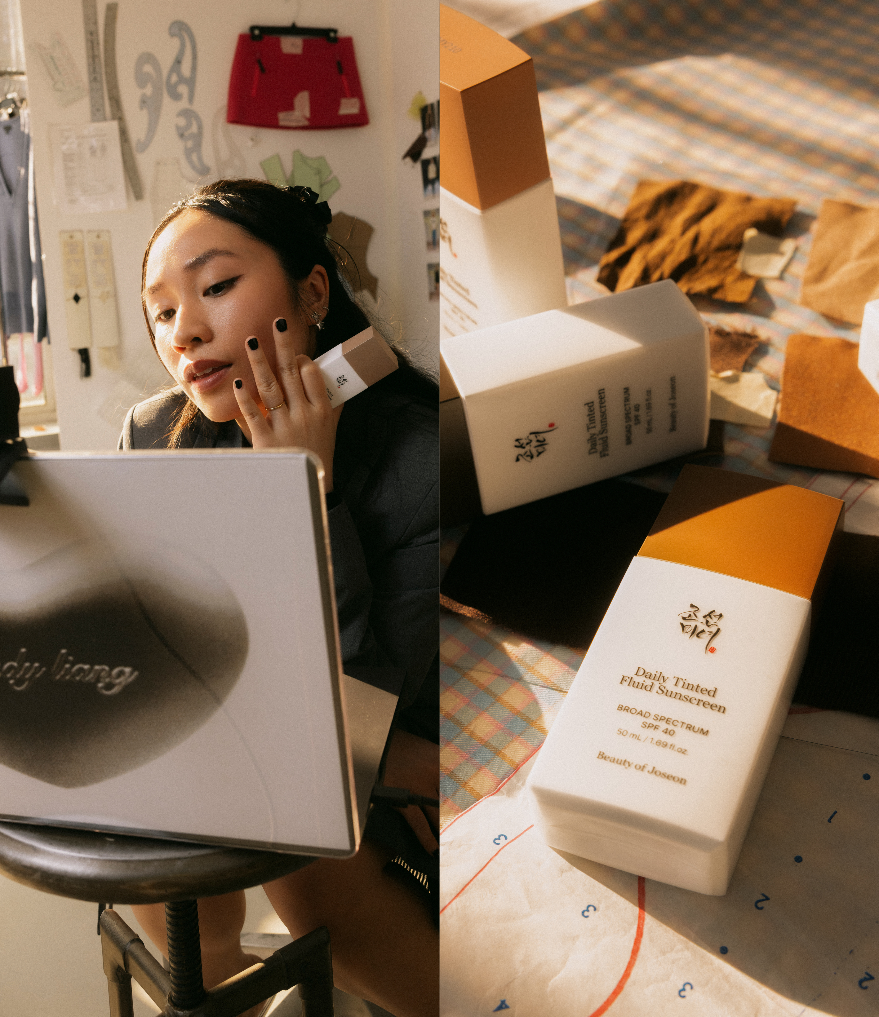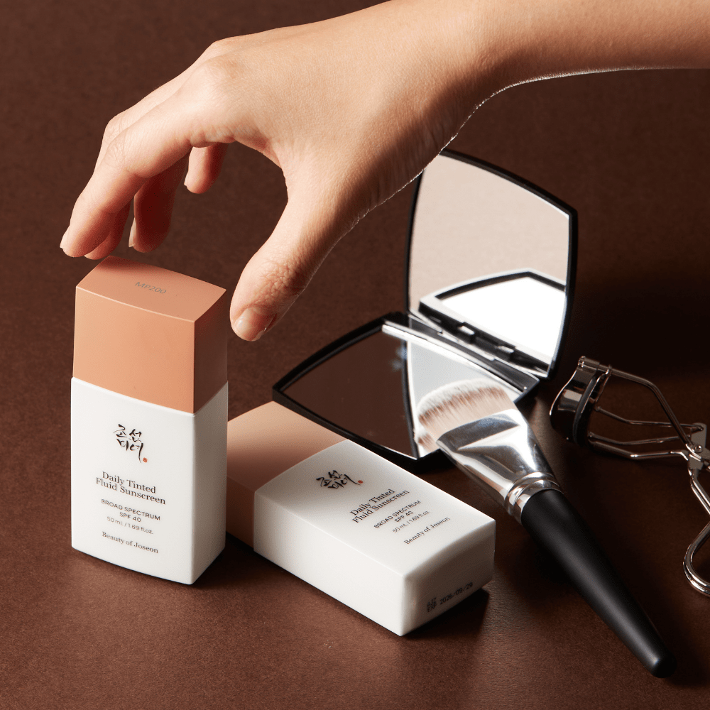 Dynasty Cream gives Daily Tinted Fluid Sunscreen extra glassiness; Red Bean Water Gel doubles up on non-drying shine control.
