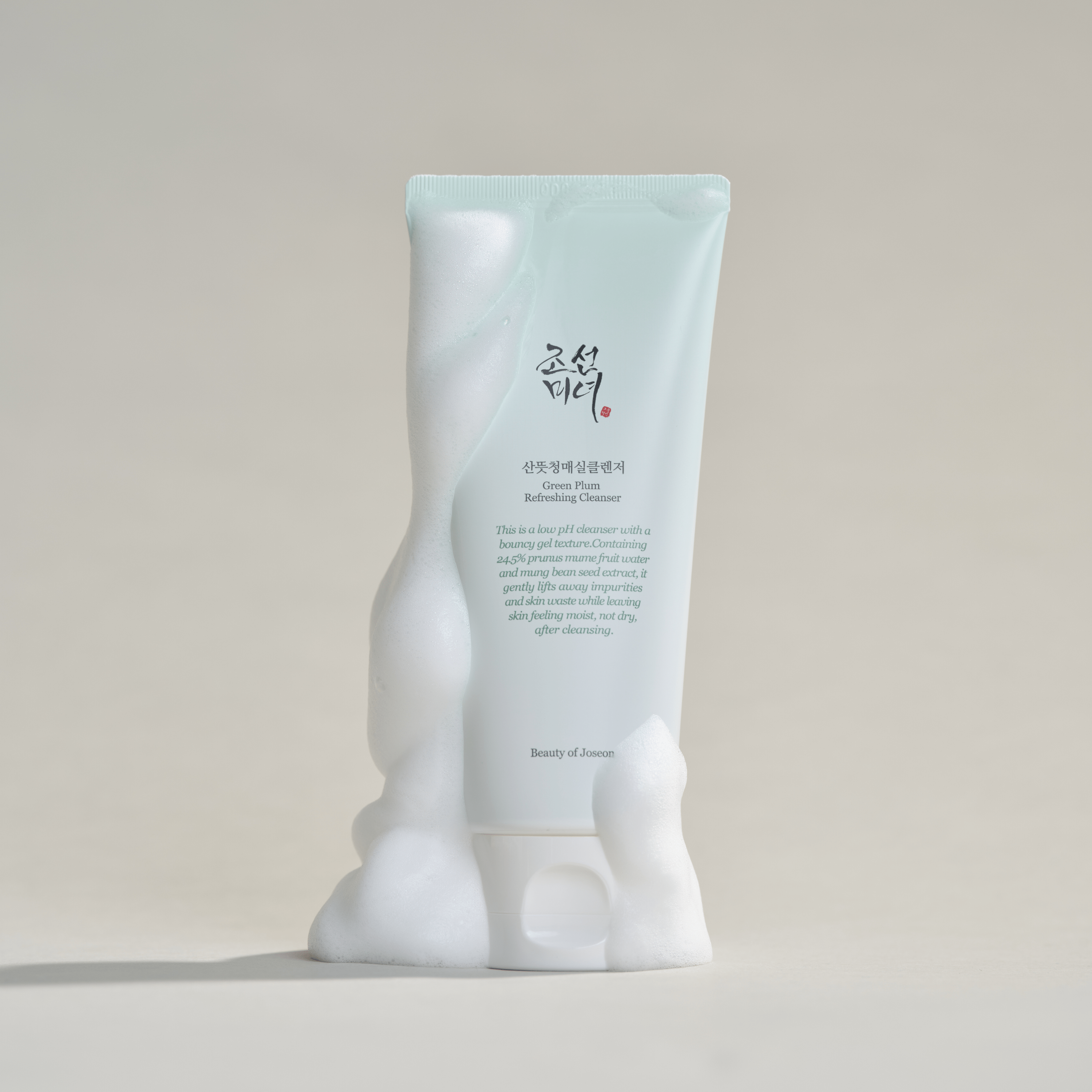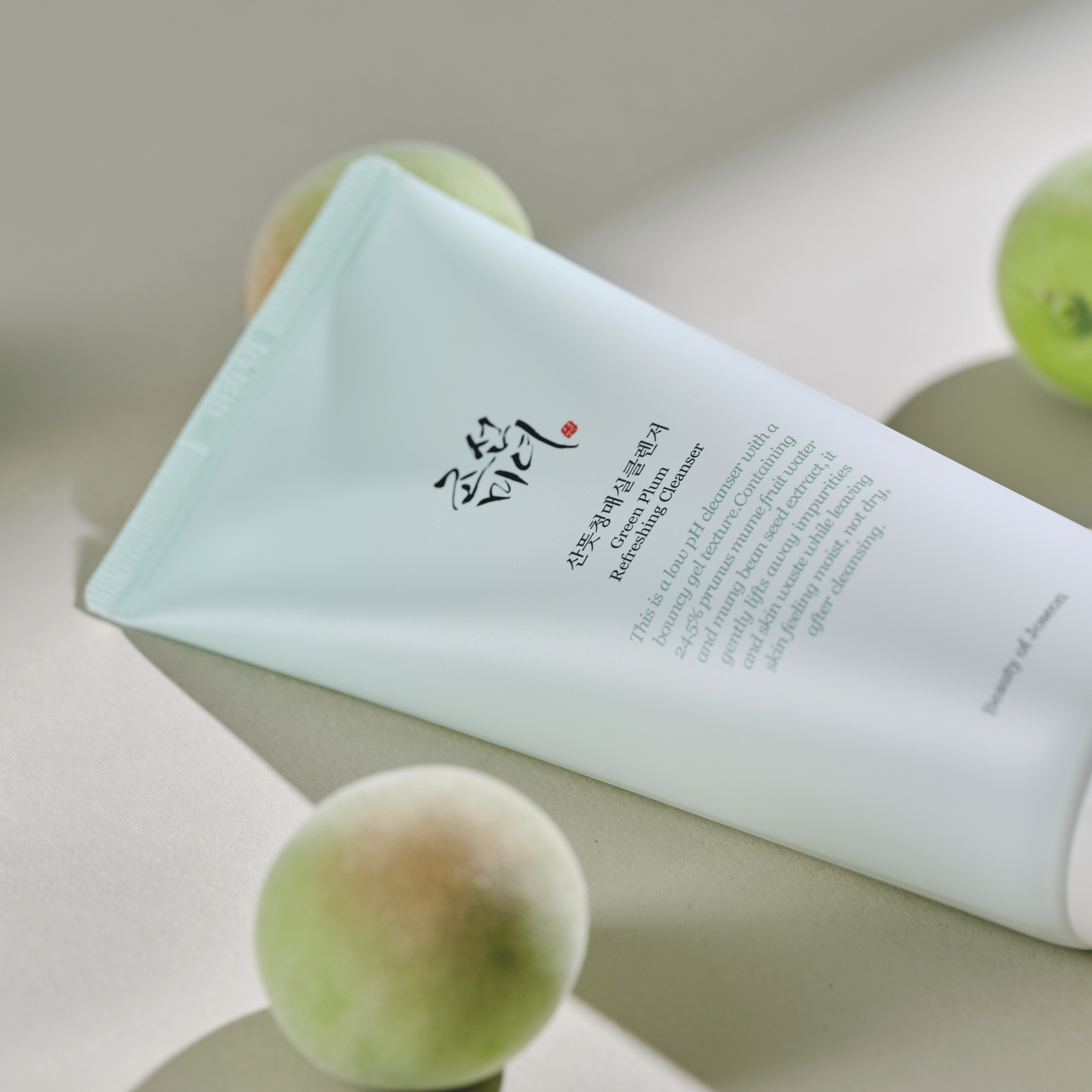 その後に Green Plum Refreshing Cleanser を使えば、残った汚れをしっかり落とし、深いうるおいをチャージ。弱酸性で低刺激、肌のバリア機能を妨げない処方で、自然なうるおいを守りながらやさしく洗い上げます。