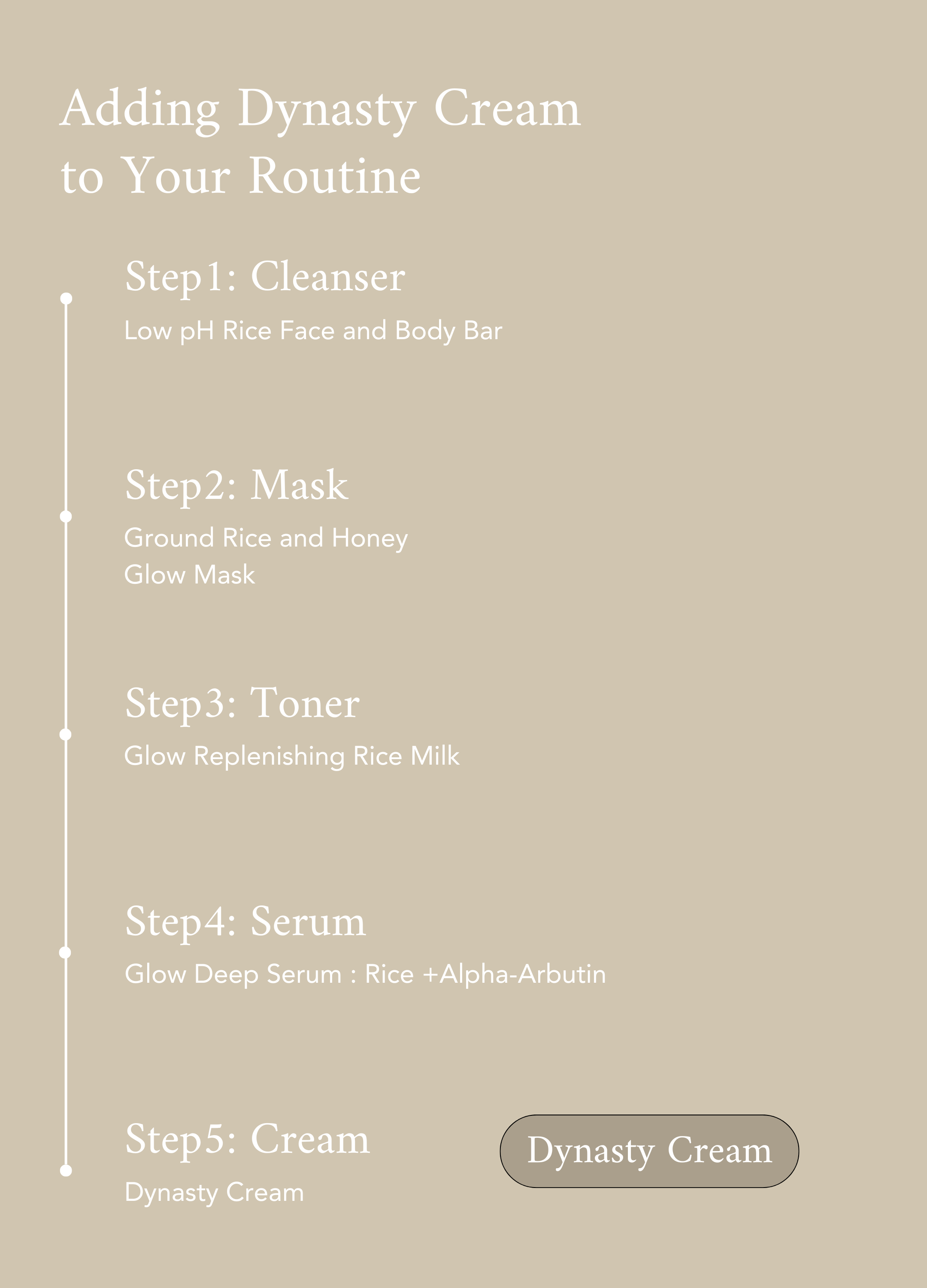 We formulated Dynasty Cream for all skin types, especially normal to dry skin. If you have oily, blemish-prone, or combination skin, reduce application to a small dot (around half the size of a pea). All other skin types can apply a coin-sized amount.